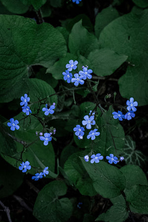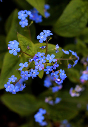 Brunnera is a genus of flowering plants in the Boraginaceae family, comprising about three species. These plants are native to woodlands and meadows in Eastern Europe and Asia, particularly Siberia. The name "Brunnera" honors the Swiss botanist Samuel Brunner, who contributed significantly to the study of the genus. Brunnera plants are characterized by their clusters of small, bright blue, star-like flowers that bloom in the spring, resembling those of Forget-Me-Nots. The foliage is equally attractive, with large, heart-shaped leaves that are often variegated with silver or white markings, adding a striking contrast to the garden.