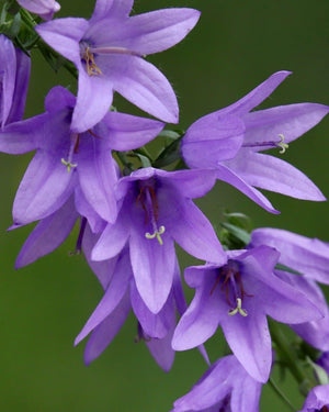 Campanula plants are known for their charming, bell-shaped flowers that come in various shades of blue, purple, white, and pink. The flowers can be single or clustered and typically bloom from late spring to early summer. The foliage is usually green and can be either rounded or lance-shaped, depending on the species. Some popular species and varieties of Campanula include Campanula persicifolia (Peach-Leaved Bellflower), Campanula carpatica (Carpathian Bellflower), and Campanula poscharskyana (Serbian Bellflower). Each species has its unique characteristics, but all share the common traits of beautiful flowers and easy care.