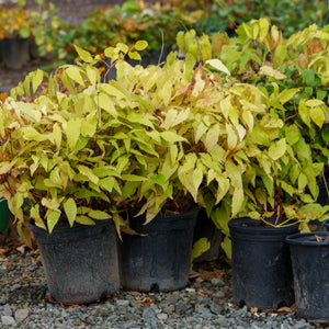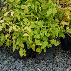Epimedium, commonly called barrenwort, brings delicate spring flowers above heart shaped leaves that stay handsome through the season, often evergreen in mild climates and flushed with copper or red on new growth. These long lived perennials excel in dry shade once established, thriving under trees and along woodland edges in humus rich, well drained soil. Mulch to keep roots cool, water to establish, and avoid heavy disturbance, since clumps spread slowly by rhizomes. Most selections are reliably deer and rabbit resistant and make superb, weed suppressing groundcovers that knit neatly between stepping stones and at path edges. Use compact forms as living mulch beneath shrubs, set showy variegated or bronze new growth types where foliage can be appreciated up close, or feature a single clump near a patio or entry as a subtle focal point with refined texture.