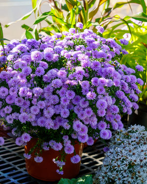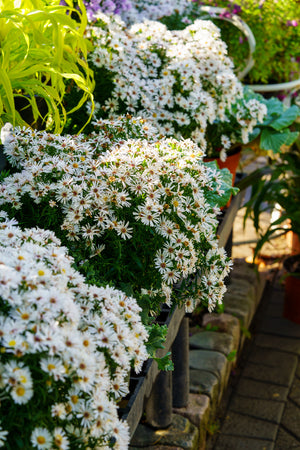 Use compact asters along the front or mid-border to stitch spaces between summer perennials that are fading. Taller New England or smooth asters anchor the back with color that carries through fall. Combine with Sedum, rudbeckia, salvia, and Russian sage for long, overlapping bloom.