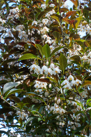 Ornamental Beauty: Celebrated for its striking dark purple foliage and delicate, white, bell-shaped flowers, the Evening Light Japanese Snowbell is a standout ornamental tree. Its unique appearance adds visual interest and elegance to gardens, making it an excellent choice for enhancing the aesthetic appeal of any landscape.