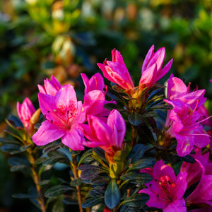 The Tradition Azalea is a mid-sized evergreen shrub that typically grows 3 to 5 feet tall and wide, forming a dense, rounded shape ideal for layered beds or borders. What sets it apart is its profuse blooming habit in May, when it becomes covered in rosy pink, funnel-shaped flowers with faint darker spotting that adds dimension.