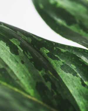 Aglaonema belongs to the Araceae family and includes several dozen species, many of which have been cultivated into unique and colorful hybrids. The plant's broad, lance-shaped leaves display eye-catching patterns, including speckled, striped, or variegated foliage in shades of green, white, cream, red, and pink. Chinese Evergreens are slow-growing perennials that can thrive in low to medium indirect light, making them ideal for dimly lit interiors where other plants might struggle.