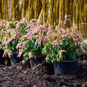 Pruning: Light pruning after flowering helps maintain shape and encourage bushiness. Remove dead or damaged wood at any time. Pieris do not require heavy pruning and respond well to gentle shaping.