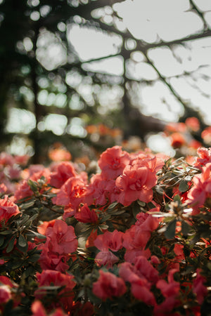Azaleas are part of the Ericaceae family and fall within the broader Rhododendron genus. While all azaleas are rhododendrons, not all rhododendrons are azaleas. Generally, azaleas have smaller, thinner leaves and bloom earlier than their larger-leaved rhododendron relatives. They are available in both deciduous and evergreen varieties and are native to Asia and North America.
