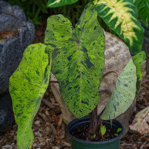 Colocasia is an essential plant for anyone seeking dramatic, tropical flair in their garden or home. With varieties like Colocasia 'Mojito', 'Royal Hawaiian White Lava', and 'Thailand Giant', there’s a bold and beautiful selection for every space. Whether used as a centerpiece in a patio pot, a moisture-loving specimen at the edge of a pond, or a lush accent in a shade garden, Colocasia transforms your landscape into a tropical paradise.