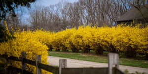 Mixed Borders: Forsythia pairs well with other early spring bloomers such as Cornus mas (Cornelian cherry dogwood), Magnolia stellata, or Hamamelis (witch hazel), creating a layered display of color. Underplant with spring bulbs like daffodils and crocus to extend seasonal interest. As the forsythia's bloom fades, summer-flowering companions like Hydrangea arborescens, Spiraea japonica, and ornamental grasses can take over the spotlight.