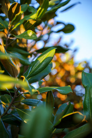 Magnolia grandiflora, native to the southeastern United States, is an iconic evergreen tree with glossy green leaves and large, creamy white, lemon-scented flowers. Cultivars like 'Bracken’s Brown Beauty', 'Little Gem', and 'Edith Bogue' offer improved cold hardiness and more compact habits, making them adaptable beyond their native range.