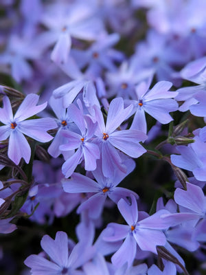 - Woodland Phlox (Phlox divaricata), such as 'Blue Moon' and 'Blue Ribbons', prefers partial shade and moist soil, offering soft pastels and an early bloom period.