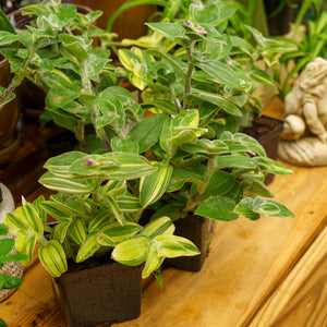Tradescantia, commonly referred to as spiderwort, inch plant, or wandering jew, is a low-maintenance houseplant or hardy perennial known for its trailing habit, colorful foliage, and resilience. Its cascading stems and vibrant leaves make it an excellent choice for hanging baskets, tabletops, or groundcover in frost-free regions. Tradescantia comes in a wide range of varieties—from soft pastels to bold purples and greens—adding texture and color to any plant collection.