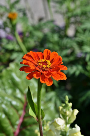 Zinnias also pair beautifully with sun-loving perennials like yarrow, lavender, or coreopsis and provide a long-lasting contrast to foliage-heavy plants like ornamental grasses.